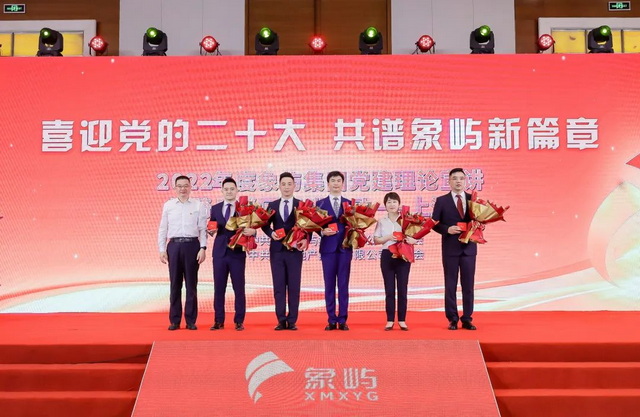 ▲象嶼集團(tuán)黨委副書(shū)記、總裁鄧啟東為宣講人頒發(fā)“象嶼集團(tuán)黨建理論宣講輕騎兵”榮譽(yù)勛章