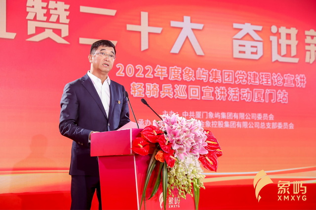 禮贊二十大,奮進新征程。11月28日,2022年度象嶼集團黨建理論宣講輕騎兵巡回宣講廈門站,在剛剛啟用的集團新總部——象嶼集團大廈舉行。象嶼人以這一獨具象嶼特色的黨建文化活動,學習宣傳貫徹黨的二十大精神,為新征程錨定紅色原點、鼓足文化風帆,吹響繼往開來、接續(xù)奮斗的號角。廈門市國資委黨委副書記、二級巡視員陳華,集團領(lǐng)導班子,老領(lǐng)導老同志,在廈公司員工代表等現(xiàn)場參加活動。