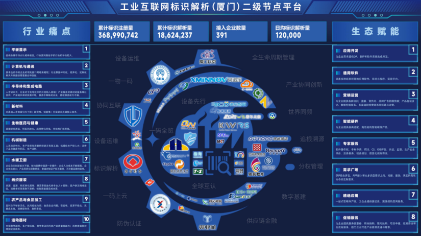 2022年8月,由象嶼集團(tuán)旗下廈門市物聯(lián)網(wǎng)產(chǎn)業(yè)研究院承接建設(shè)的國(guó)家工業(yè)互聯(lián)網(wǎng)標(biāo)識(shí)解析(廈門)綜合型二級(jí)節(jié)點(diǎn)正式投入運(yùn)營(yíng),為廈門乃至全國(guó)企業(yè)提供專業(yè)的標(biāo)識(shí)注冊(cè)、標(biāo)識(shí)查詢、標(biāo)識(shí)解析等數(shù)據(jù)服務(wù)。迄今平臺(tái)標(biāo)識(shí)注冊(cè)量已超3.7億條,標(biāo)識(shí)解析量近2千萬(wàn)次,為保障工業(yè)互聯(lián)網(wǎng)互聯(lián)互通提供了關(guān)鍵基礎(chǔ)設(shè)施,助力工業(yè)企業(yè)提升數(shù)字化轉(zhuǎn)型能力,為廈門產(chǎn)業(yè)數(shù)字化發(fā)展注入一股澎湃新動(dòng)能。