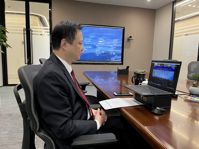 ▲邵蕰默同志代表象嶼集團線上視頻參會領獎