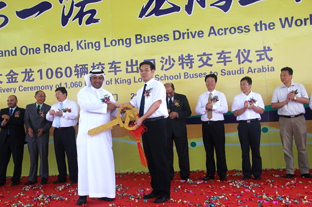 6月18日上午,“大金龍”1060輛校車出口沙特交車儀式在福建廈門現(xiàn)代碼頭舉行。此系今年以來中國客車出口第一大單。廈門市副市長林銳向大金龍沙特用戶代表交付了金鑰匙。隨著1060輛校車啟程前往沙特為學(xué)子護(hù)航,福建沿海與阿拉伯海這條古老的海上絲綢之路,開啟了新時(shí)期貿(mào)易合作的大幕。