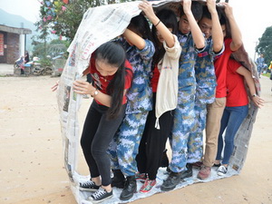 通過互動(dòng)游戲、文化演出等豐富多彩的形式與老區(qū)孩子們玩在一起、樂在一起