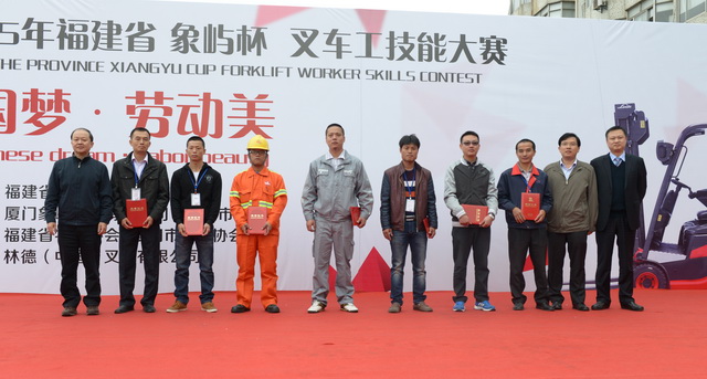 叉車工是港口物流行業(yè)的一個(gè)重要基礎(chǔ)性工種,每個(gè)叉車司機(jī)技能水平的高低,直接影響港口物流公司的集聚輻射能力。為了提高叉車工的技能水平,促進(jìn)廣大職工鉆業(yè)務(wù)、學(xué)技術(shù),以本領(lǐng)提升促轉(zhuǎn)型升級,成為現(xiàn)代港口物流領(lǐng)域的行家里手,2015年12月5日,由福建省總工會主辦,廈門象嶼集團(tuán)有限公司、廈門市總工會承辦的“中國夢?勞動美”2015年福建省“象嶼杯”叉車工職業(yè)技能大賽在廈門舉行。福建省總工會副主席丁文清,象嶼集團(tuán)有限公司黨委書記、董事長,省勞模協(xié)會副會長王龍雛,廈門市總工會常務(wù)副主席陳永紅,省總工會經(jīng)濟(jì)部部長林國雄,市開發(fā)區(qū)和電子信息工委主任文建軍,象嶼集團(tuán)工會主席邵蕰默,市總工會經(jīng)濟(jì)部部長游坤平等領(lǐng)導(dǎo)出席并觀摩比賽。