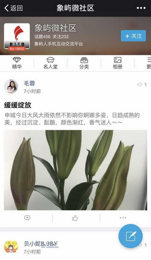 他們還在象嶼集團(tuán)公眾號“微社區(qū)”里寫下了一篇篇綠色盆栽的成長日記,積攢和分享培植經(jīng)驗(yàn),傳遞熱愛聲明、綠色低碳的生活理念。