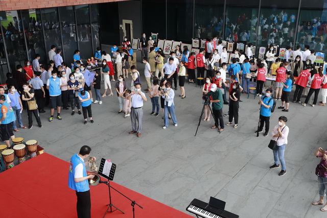 5月20日當(dāng)天,國(guó)際航運(yùn)中心涌動(dòng)著愛(ài)的暖流。在自閉癥兒童藝術(shù)作品展覽義賣(mài)區(qū),“星寶”們制作的各式可愛(ài)公仔和創(chuàng)意畫(huà)作吸引了不少象嶼員工和過(guò)路市民駐足圍觀。