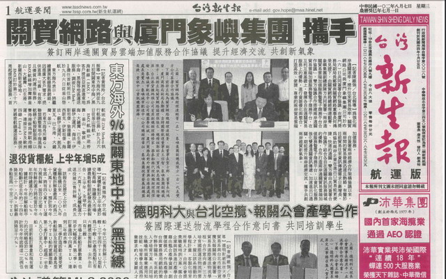 【臺灣新生報】關(guān)貿(mào)網(wǎng)路與廈門象嶼集團攜手——簽訂兩岸通關(guān)貿(mào)易云端加值服務合作協(xié)議,提升經(jīng)濟交流,共創(chuàng)新氣象