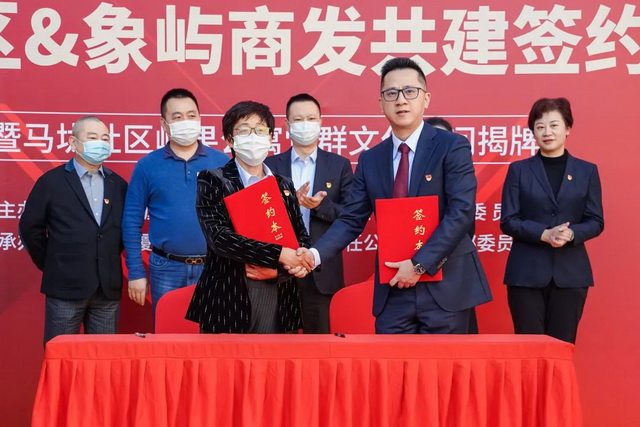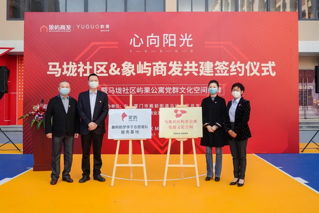 近日,廈門市湖里區(qū)殿前街道馬垅社區(qū)黨總支和象嶼商業(yè)發(fā)展聯(lián)合黨支部在廈門嶼果公寓簽約共建。殿前街道黨工委書記顏莉莉,象嶼集團黨委副書記邵蕰默,殿前街道黨工委委員、二級調研員邱忠民出席儀式,并為馬垅社區(qū)嶼果公寓黨群文化空間揭牌。