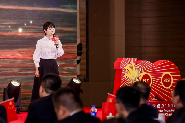 ▲象嶼張家港黨支部書記、總經(jīng)理郭真晶帶來宣講《遇見象嶼,遇見一切可能》