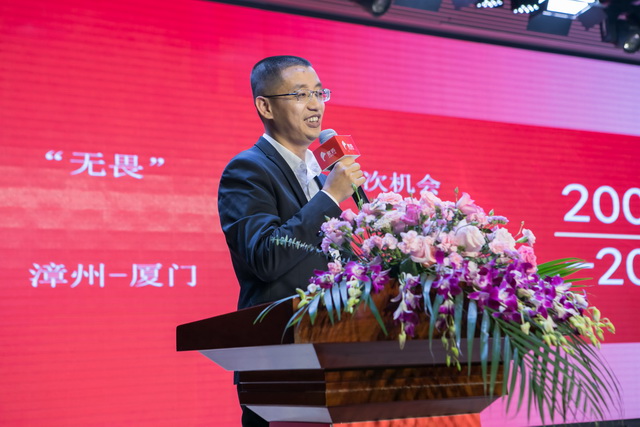 ▲福建象嶼房地產(chǎn)總經(jīng)理陳志杰帶來(lái)宣講《振奮文化精神,緊抓發(fā)展機(jī)遇,以實(shí)干篤定前行》