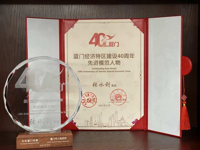 在這一特殊歷史時點上,廈門市委、市政府決定對為廈門經(jīng)濟(jì)特區(qū)建設(shè)作出突出貢獻(xiàn)的先進(jìn)模范人物和創(chuàng)新創(chuàng)業(yè)人物進(jìn)行表揚。全國勞動模范、象嶼集團(tuán)黨委書記、董事長張水利榮膺廈門經(jīng)濟(jì)特區(qū)建設(shè)四十周年先進(jìn)模范人物。