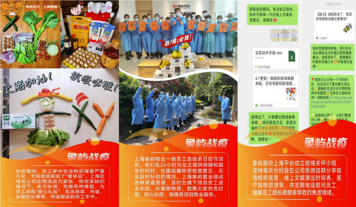自上海疫情防控攻堅(jiān)戰(zhàn)打響以來(lái),923位象嶼人堅(jiān)守崗位,奮戰(zhàn)在此,他們的安危冷暖牽動(dòng)人心。象嶼集團(tuán)黨委、集團(tuán)公司、集團(tuán)工會(huì)特向在滬員工發(fā)去暖心慰問(wèn)信,并提供24小時(shí)不間斷的員工心理關(guān)愛(ài)熱線,幫助員工疏解情緒壓力。集團(tuán)黨委、集團(tuán)工會(huì)還相繼出臺(tái)多項(xiàng)防疫專項(xiàng)補(bǔ)助政策,并統(tǒng)籌協(xié)調(diào)旗下象嶼股份、象嶼地產(chǎn)、象嶼金控等相關(guān)行業(yè)落實(shí)在滬員工關(guān)愛(ài)各項(xiàng)措施,為員工構(gòu)筑堅(jiān)實(shí)后盾。